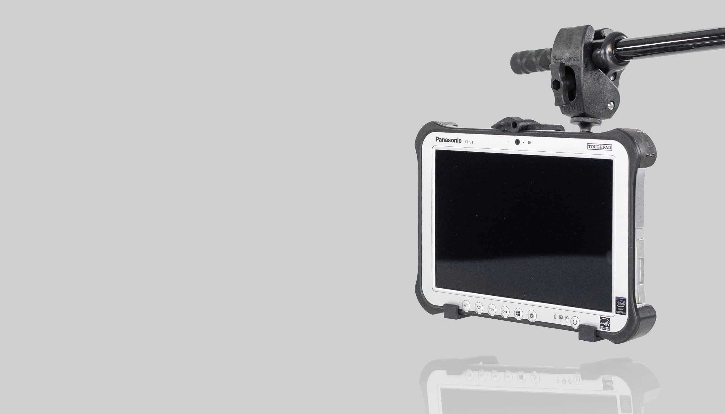 The PWA POLE HOLDER is designed to fit the TOUGHBOOK G1 precisely. It fixes the tablet to a pole or round pipe as well as to plumb rods in everyday surveying.